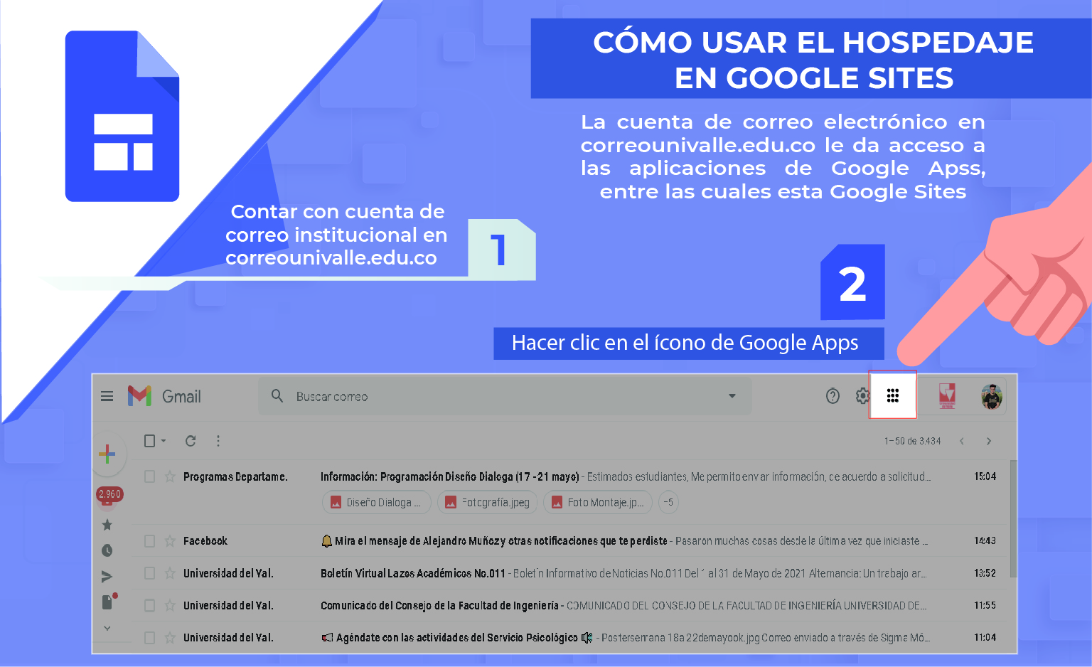 b. La cuenta de correo electrónico en correounivalle.edu.co le da acceso a las aplicaciones de Google Apps, entre las cuales está Google Sites.